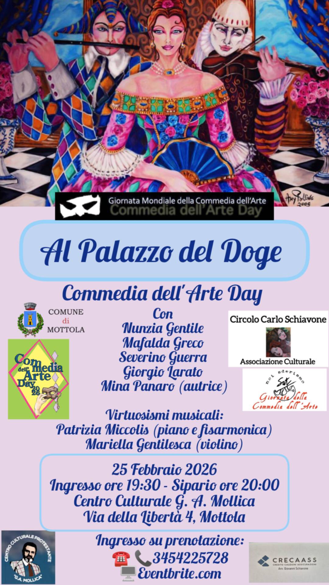 In occasione della Giornata Mondiale della Commedia dell'Arte, l'associazione culturale "Circolo Carlo Schiavone", per il terzo anno consecutivo, propone uno spettacolo teatrale ispirato alla Commedia dell'Arte per la valorizzazione e divulgazione della stessa.