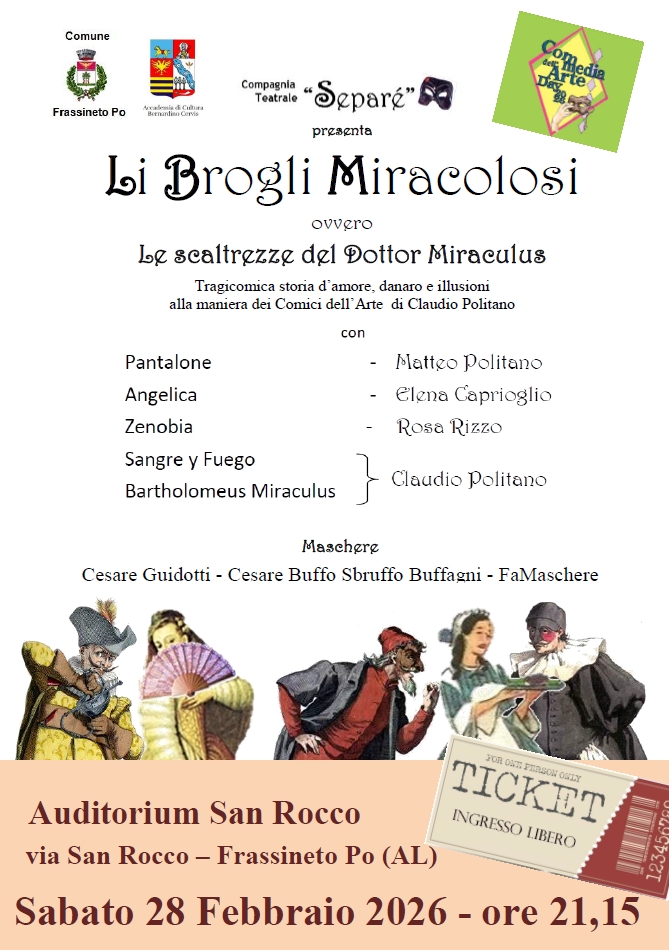 C’è solo un modo per saperlo, mettersi comodi e assistere allo spettacolo. Utilizzando i mezzi espressivi della commedia dell’Arte e strizzando l’occhio al mondo dei burattini grazie ai lazzi e alle improvvisazioni dei comici potrete rivivere le atmosfere di un teatro mai dimenticato e trascorrere un ora di spensierata allegria.