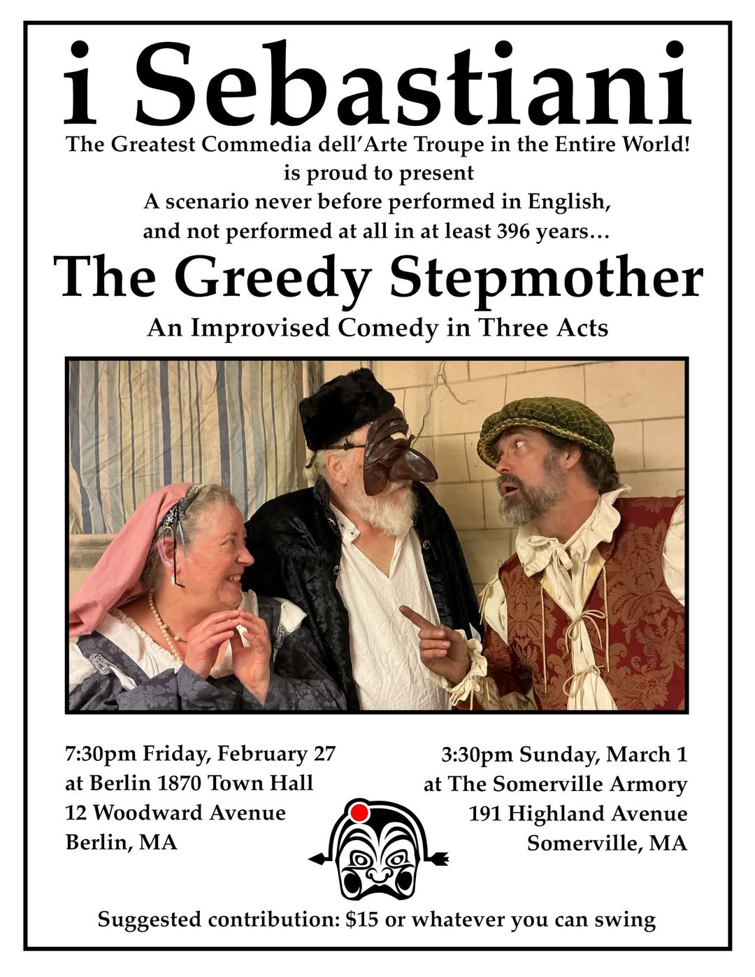 i Sebastiani presents "The Greedy Stepmother," a scenario adapted from (and closely adhering to) the historical scenario called "The Greedy Old Man," at 7:30pm!