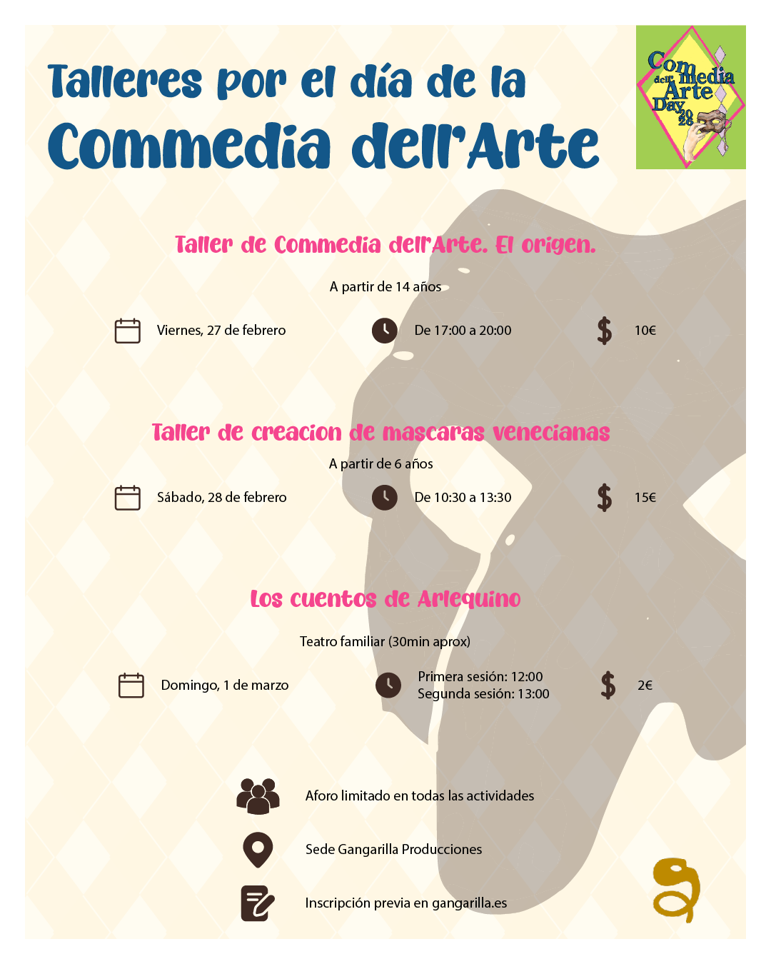Teatro familiar en el que poder disfrutar de las maravillosas historias de Arlequino, concoer más sobre los personajes de Commedia dell'Arte y todos sus intereses y miedos.